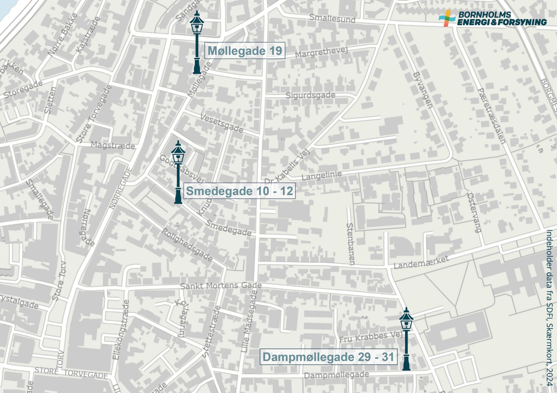 – Vi vil gerne undersøge om det er muligt at udnytte den ekstra el-kapacitet, der er til rådighed i lygtepælene. På den måde kan vi undgå at grave den gamle bydel op og lægge nye kabler for at imødekomme, det stigende behov for lademuligheder, vi forventer i fremtiden, siger Claus M. Andersen, direktør i Bornholms Energi & Forsyning.