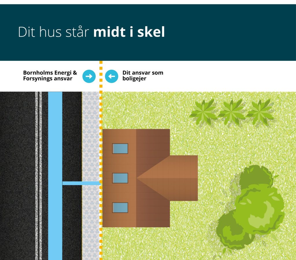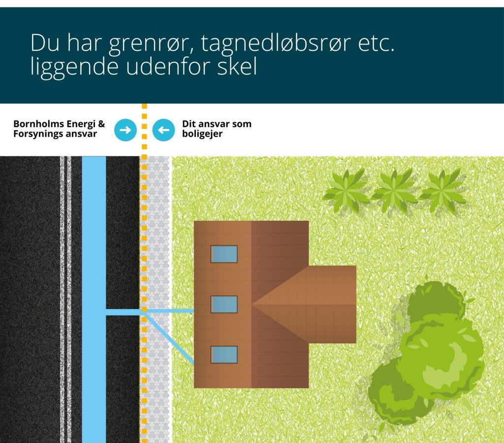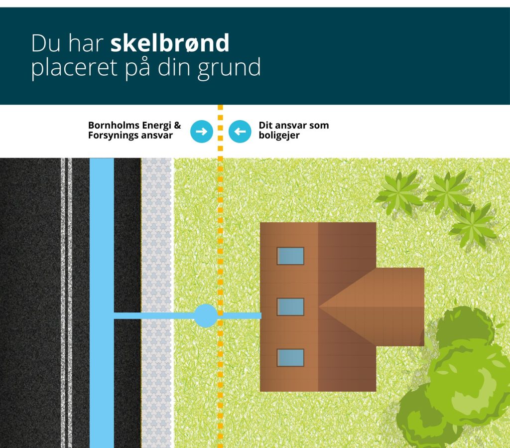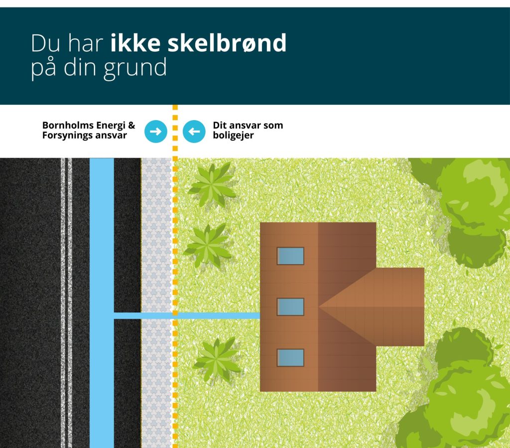Der er dog en undtagelse. Hvis der er placeret en skelbrønd med Bornholms Energi & Forsynings logo inden for skellet på din grund, har du kun ansvaret for kloakstikledningen fra boligen og frem til skelbrønden. Bornholms Energi & Forsyning står for drift og vedligeholdelse fra skelbrønden og videre ud til hovedledningen.