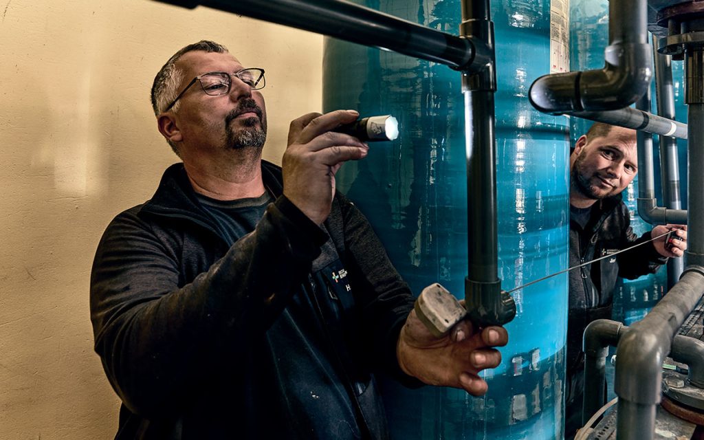 Vi har ansvaret for at levere drikkevand til en stor del af Bornholm. Det betyder, at vi arbejder hele vejen fra indvinding af grundvand til vandet løber ud af hanen hjemme hos dig.
