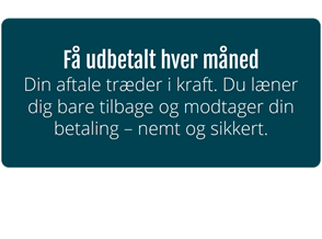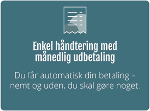 Du får udbetaling én gang om måneden – automatisk. Du vælger selv, om pengene skal gå ind via betalingsservice eller nemkonto.